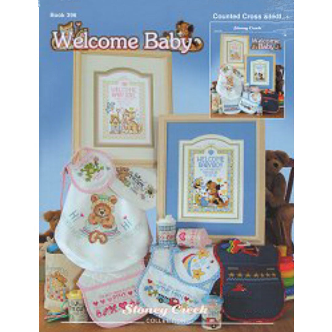 Welcome Baby Girl (birth sampler with cat, bird and birdhouse) (92w x 135h Stitches)