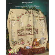 Stoney Creek - Hummingbird Trellis Afghan. Presents elaborate designs with hummingbirds and flowers surrounding the word WELCOME.