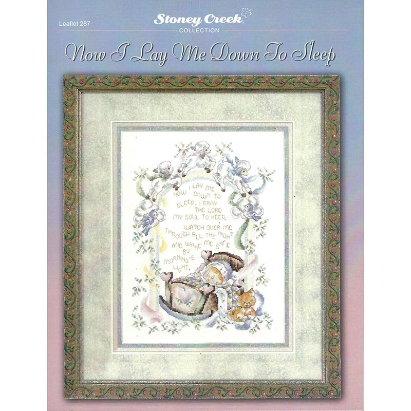 Stoney Creek presents Now I Lay Me Down to Sleep, A chart that would hang proudly on any baby's room. With craddle and birds and lambs surround the baby in sleep.