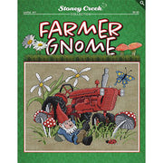 Stoney Creek Leaflet Farmer Gnome featuring a sleepy Gnome with red tractor in background, surround by mushrooms, butterflies and flowers..