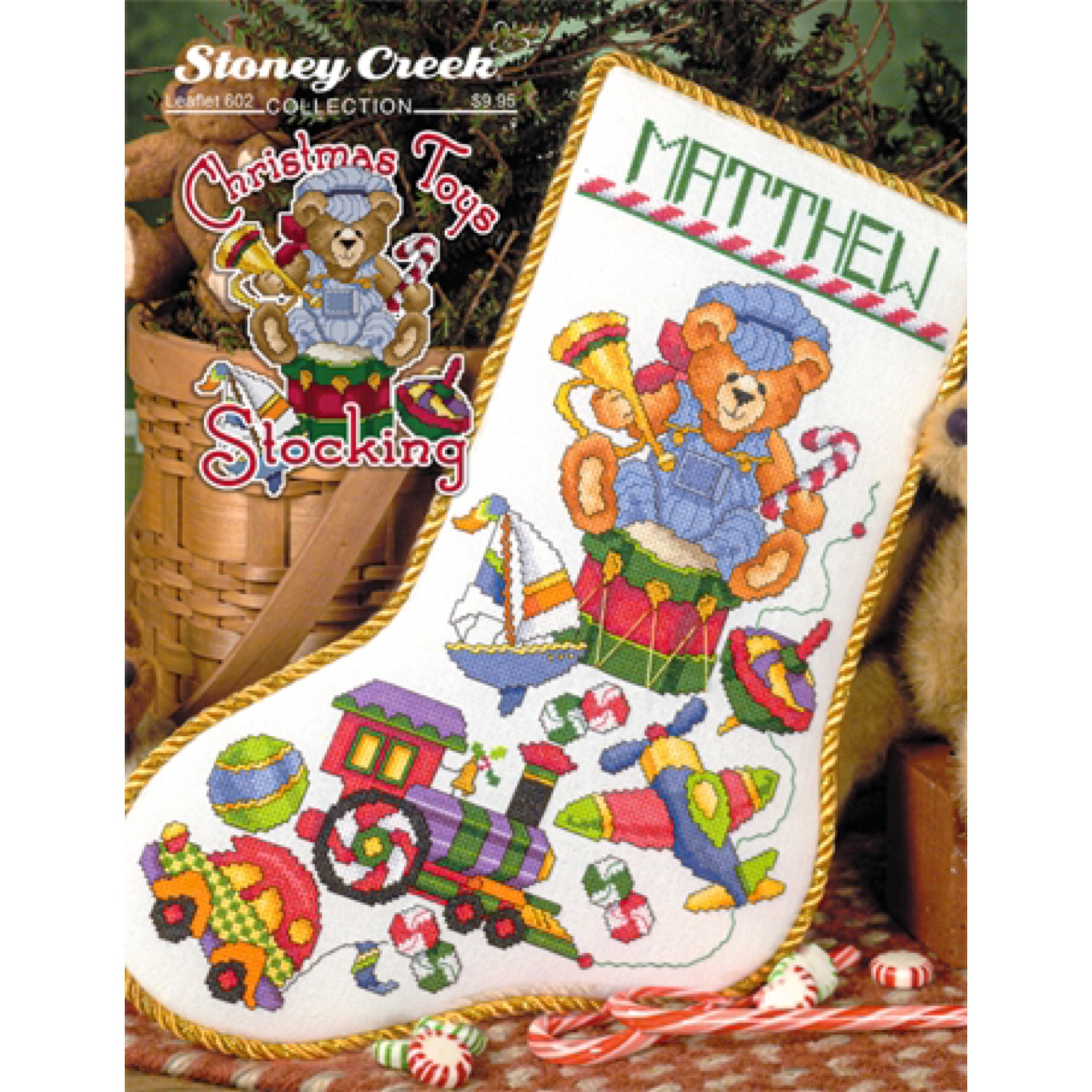 Stoney Creek Collection 602 Christmas Stocking with a Teddy Bear, drum, train, car, airplane, spinning top, boat, etc