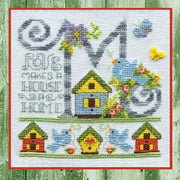 Pattern of the Month PM1703 February 2020 Home makes a Houses - Spring Home Banner M with birdhouses and f birds and flowers. Series 3 of 4