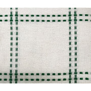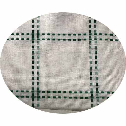 Hearthside is an evenweave fabric. Color: Beige with Dark Green border 100 percent polyacrylic