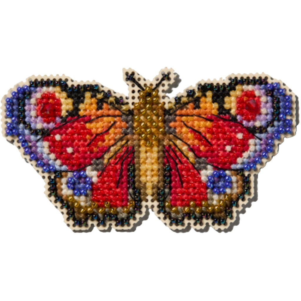 Kit includes: beads, ceramic button, perforated paper, floss, needles, floss, chart and instructions