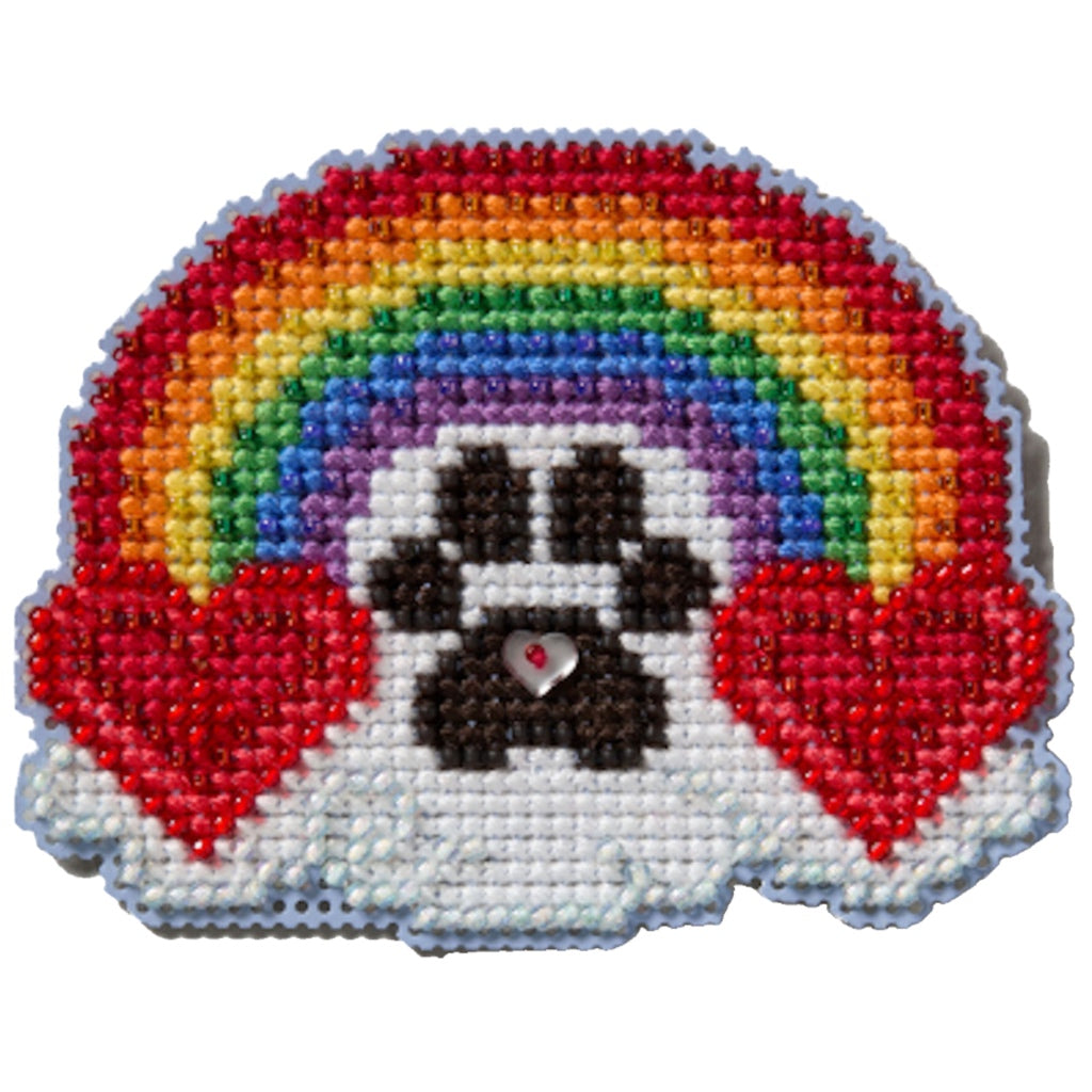 Kit includes: beads, ceramic button, perforated paper, floss, needles, floss, chart and instructions