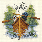 Dimensions -Together Dogs Two dogs in canoe . This kit contains 14 count ivory Aida, cotton thread, needle and easy instructions.