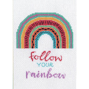 Dimensions - Follow Your Rainbo . This kit contains 14 count white Aida, cotton thread, needle and easy instructions.