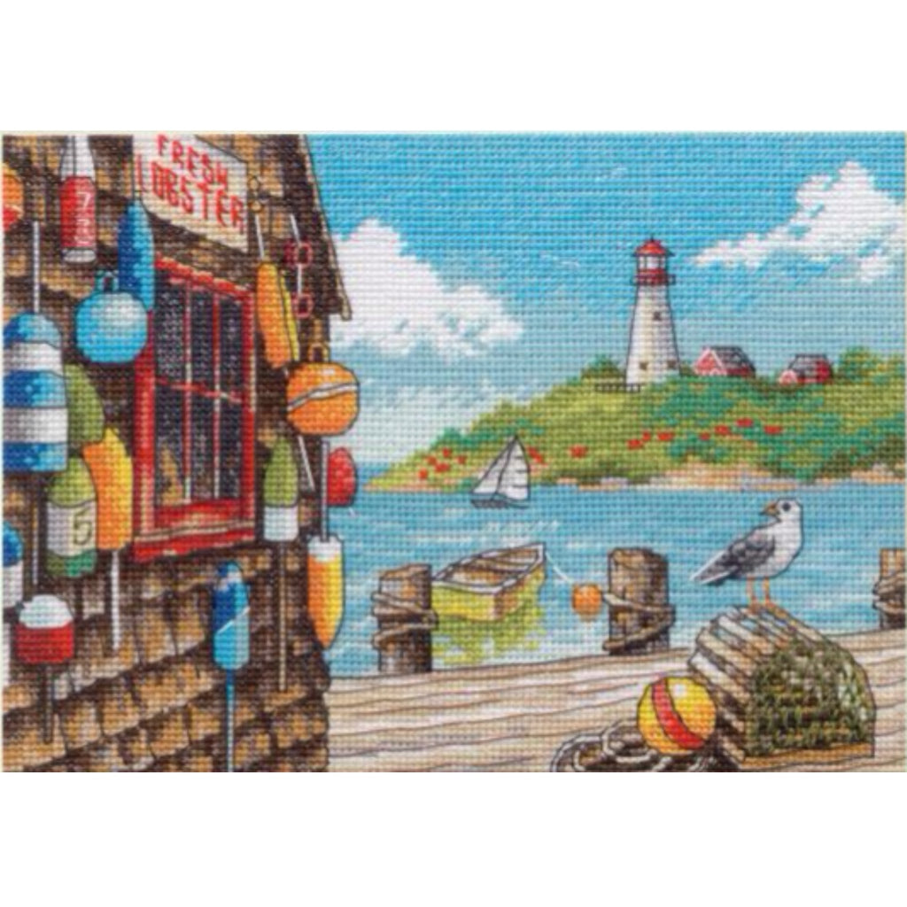 Dimensions 70-65230 This dockside scene of a lobster shack, lighthouse, seagull, and boats will have you thinking of warm, summer days.