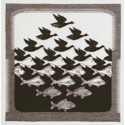 Birds on white background gradually emerging as white fish on a black background