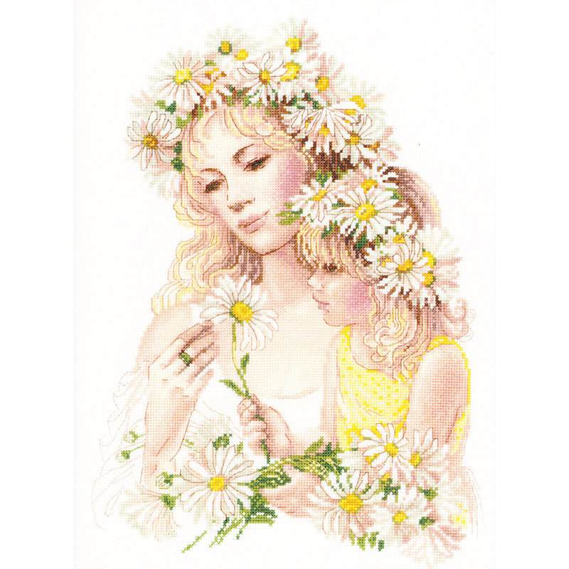 Riolis 100/035 Harmony Woman and Girl with daisiesContains multi color chart, 14 count Zweigart 14ct Aida fabric, Anchor cotton. Boxed presentation.