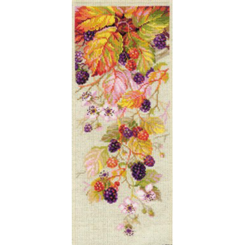 Kit includes color chart, 14 ct Flaxen Zweigart Aida fabric, woolen and acrylic yarn, safil (23 colors). stranded cotton (1 color), a needle.