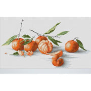 Luca-S design of Still Life of Tangarines. Several tangarines with leaves and the inital peeling of one. all worked on Zweigart 18 fabric with 100% cottton presorted Anchor threads, Instructions included and needle