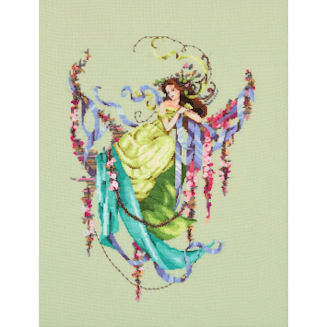 Floral garlands flow from lady in yellow. Embellished with specialty threads and treasures.