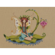 Pond Pixies By Nora Corbett #266 Water Sprite Sprite sitting on a Lily Pad with turquoise skirt. Stich Count: 127 x 107 stitches