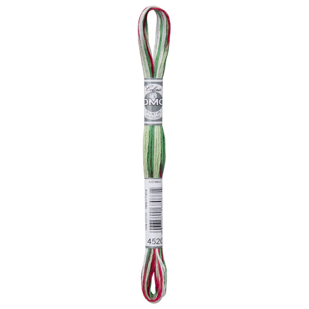 DMC Mouline Coloris embroidery floss is a multi - colored thread with four shades all in one. . It is comprised of six (size 25) easily separated strands, and 100% cotton.