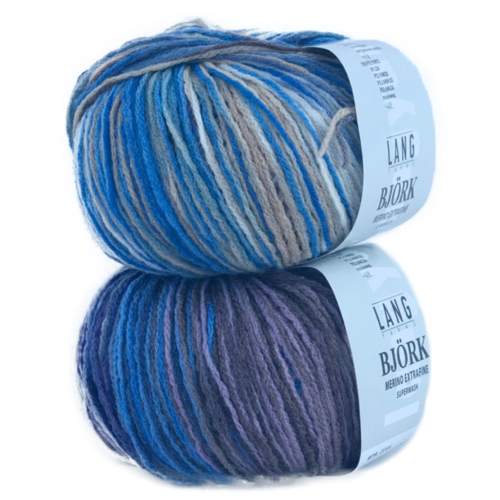 Amazing memory and colours make up Lang's Bjork. Choose this yarn for easy knit projects with simple stitch patterns and let the yarn take center stage.