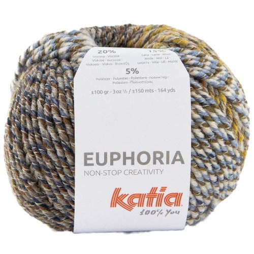 Euphoria Mouline Effect Multcolored Fantasy Yarn -Khaki-blue-Black