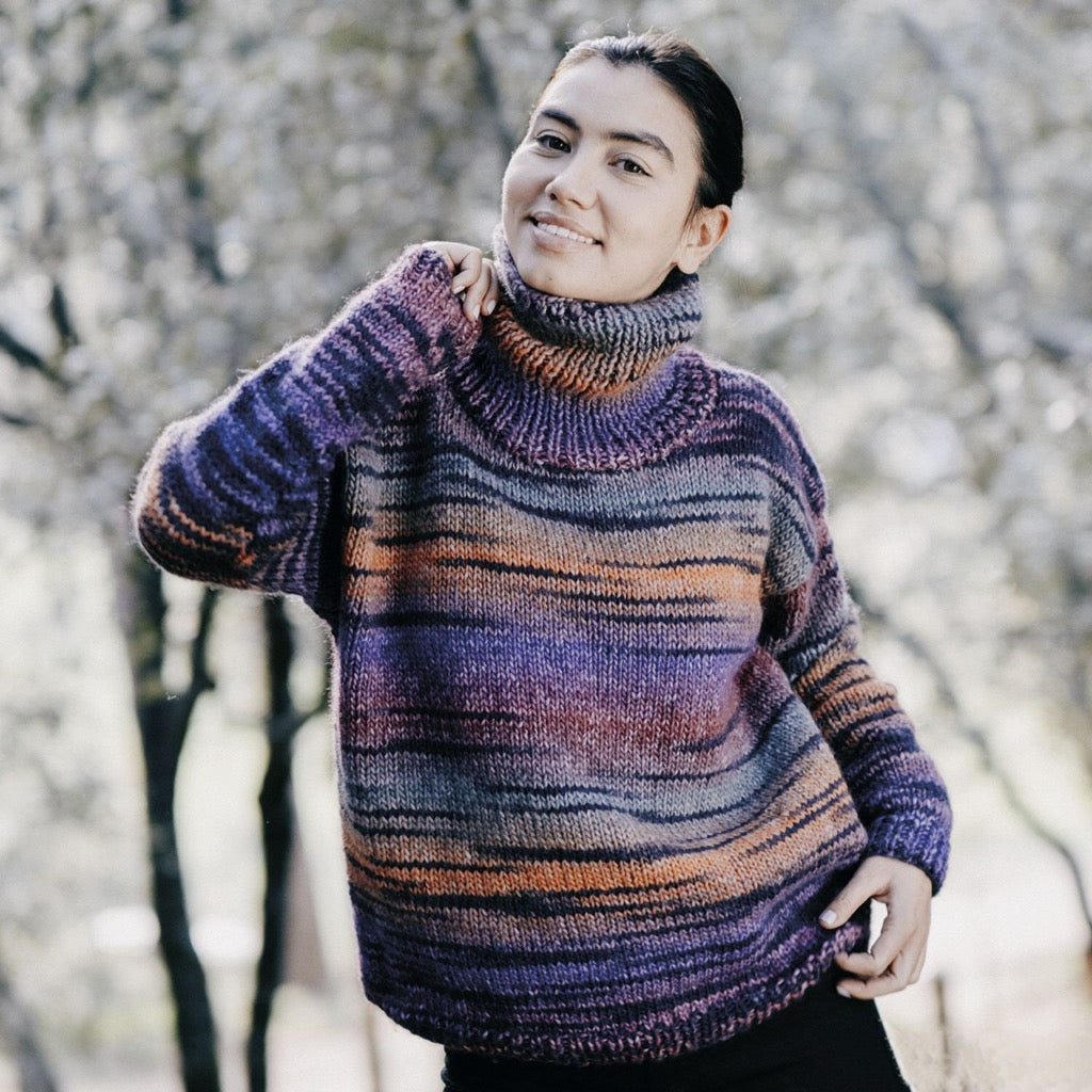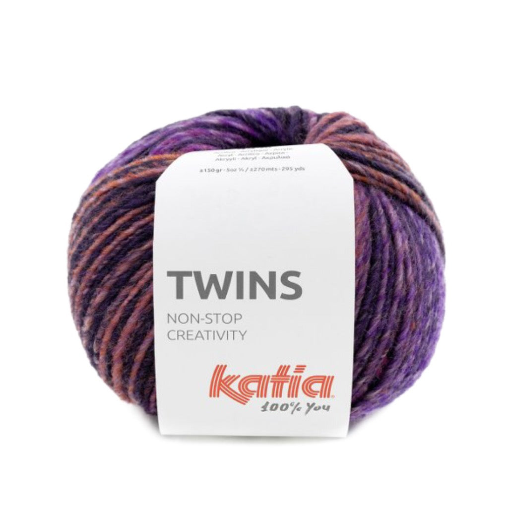 Twins is a surprising fantasy yarn with blurred black stripes over a graded color effect of warm and cool colors.