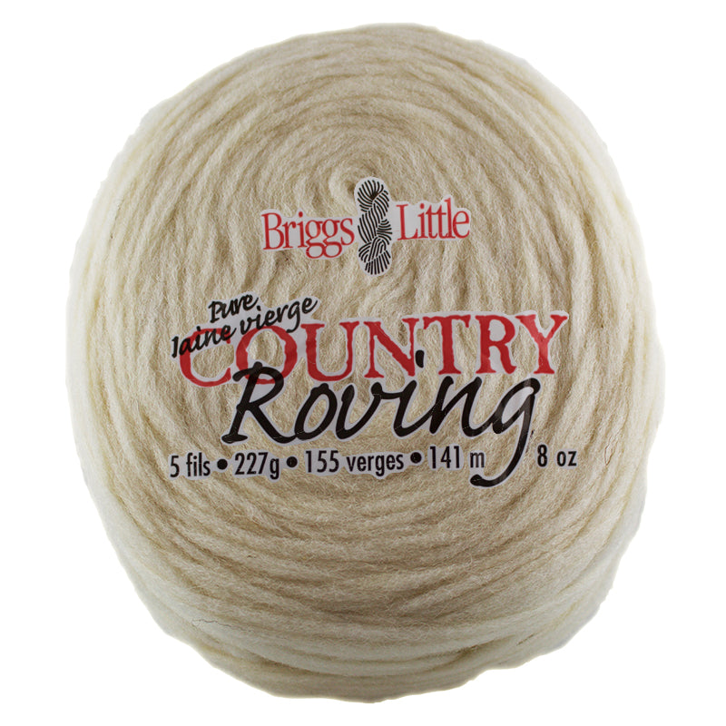 Put up in 5-ply pencil rovings that knits to the tension of the super bulky yarn. Use Country Roving for knitting, crocheting, spinning, felting and stuffing.