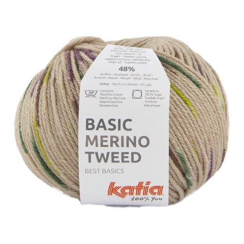 Basic Merino Tweed 401 Beige Brown-Pearl blackberry-Yellow green