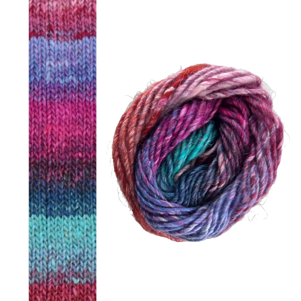 Noro Silk Garden A luscious blend of sumptuous silk, fine kid mohair and soft lamb’s wool combine gloriously in this single ply, Aran weight...