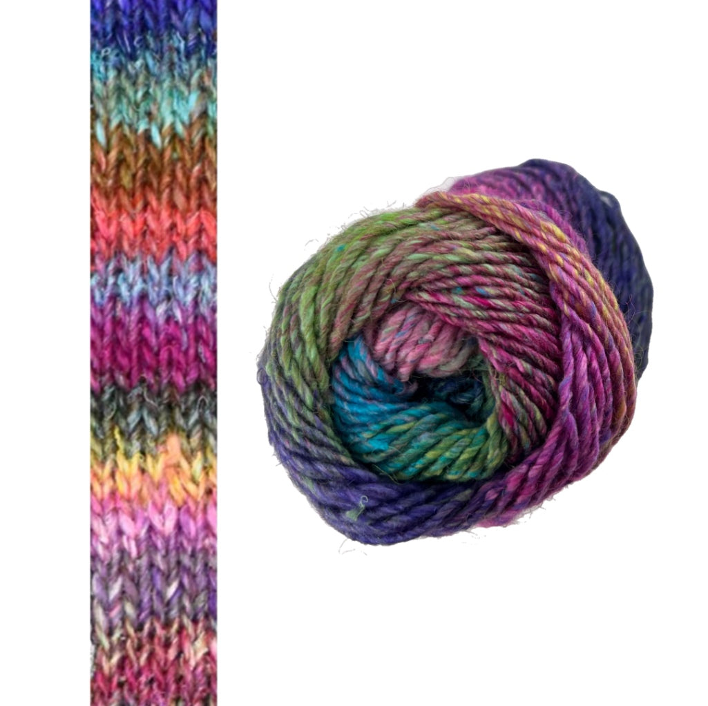Noro Silk Garden A luscious blend of sumptuous silk, fine kid mohair and soft lamb’s wool combine gloriously in this single ply, Aran weight...