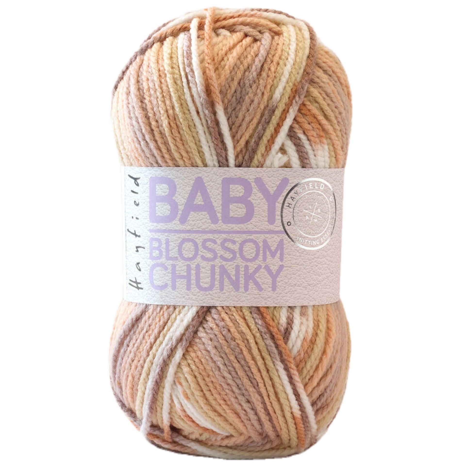 Hayfield Baby Blossom Chunky in Buttercup is a pretty self-patterning yarn for babies and children, dainty little flowers appear in stripes as you knit.