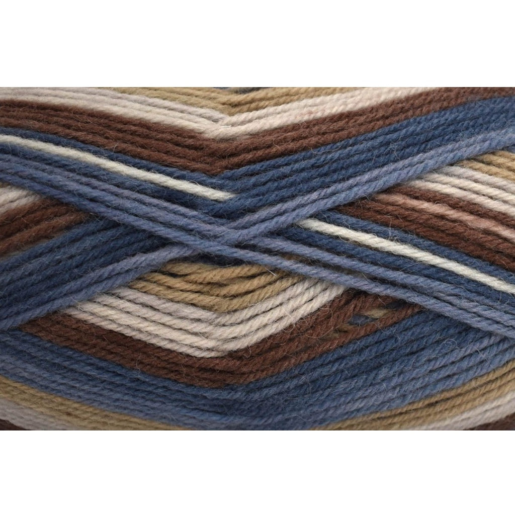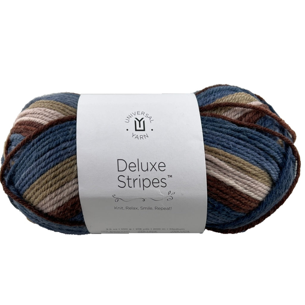The Deluxe family blends wool for softness and nylon for strength. The color changes are crisp. A high quality worsted weight.