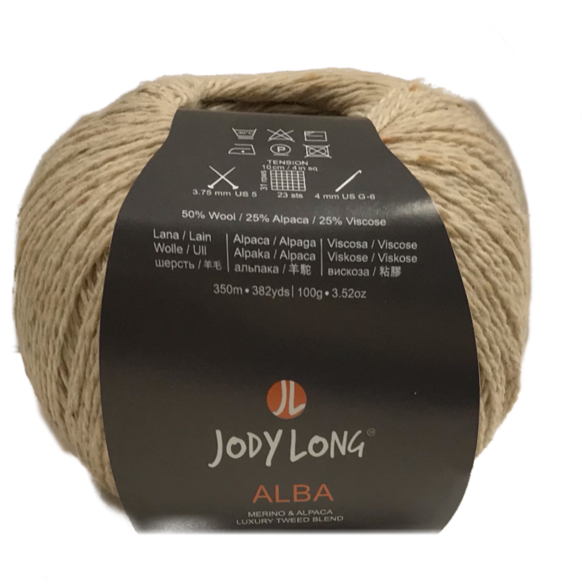 Jody Long Alba This tweedy yarn combines a luxurious blend of Merino Wool and Superfine Alpaca, accented with a taste of viscose sourced from German sustainable forestry.