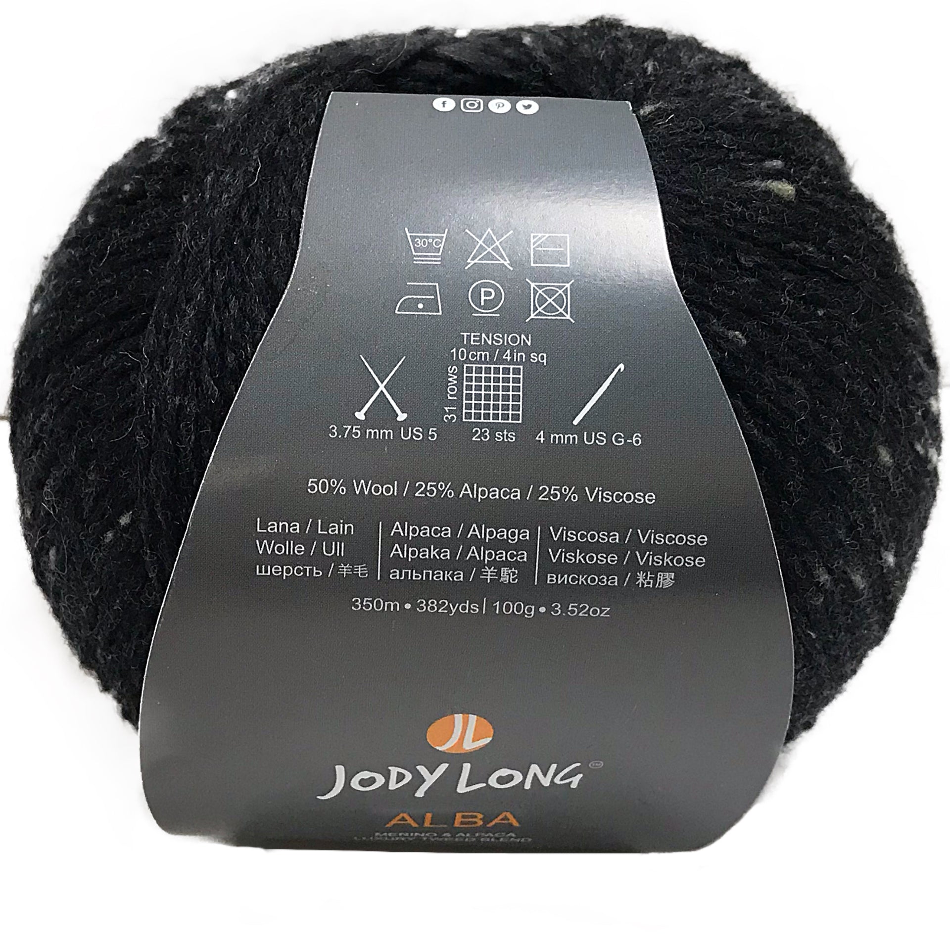 Jody Long Alba This tweedy yarn combines a luxurious blend of Merino Wool and Superfine Alpaca, accented with a taste of viscose sourced from German sustainable forestry.