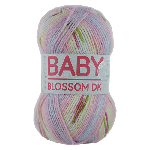 As you knit, you’ll find sprigs of tiny flowers appearing between the gentle variegated stripes of color.