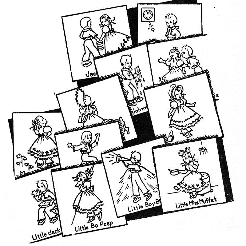 Aunt Marthas Hot Iron Transfers, AM3275, Nursery Rymes. Some of the favorite old time transfers capture, Jack and Jill, Little Bo Peep, Little Mis Muffet, etc.