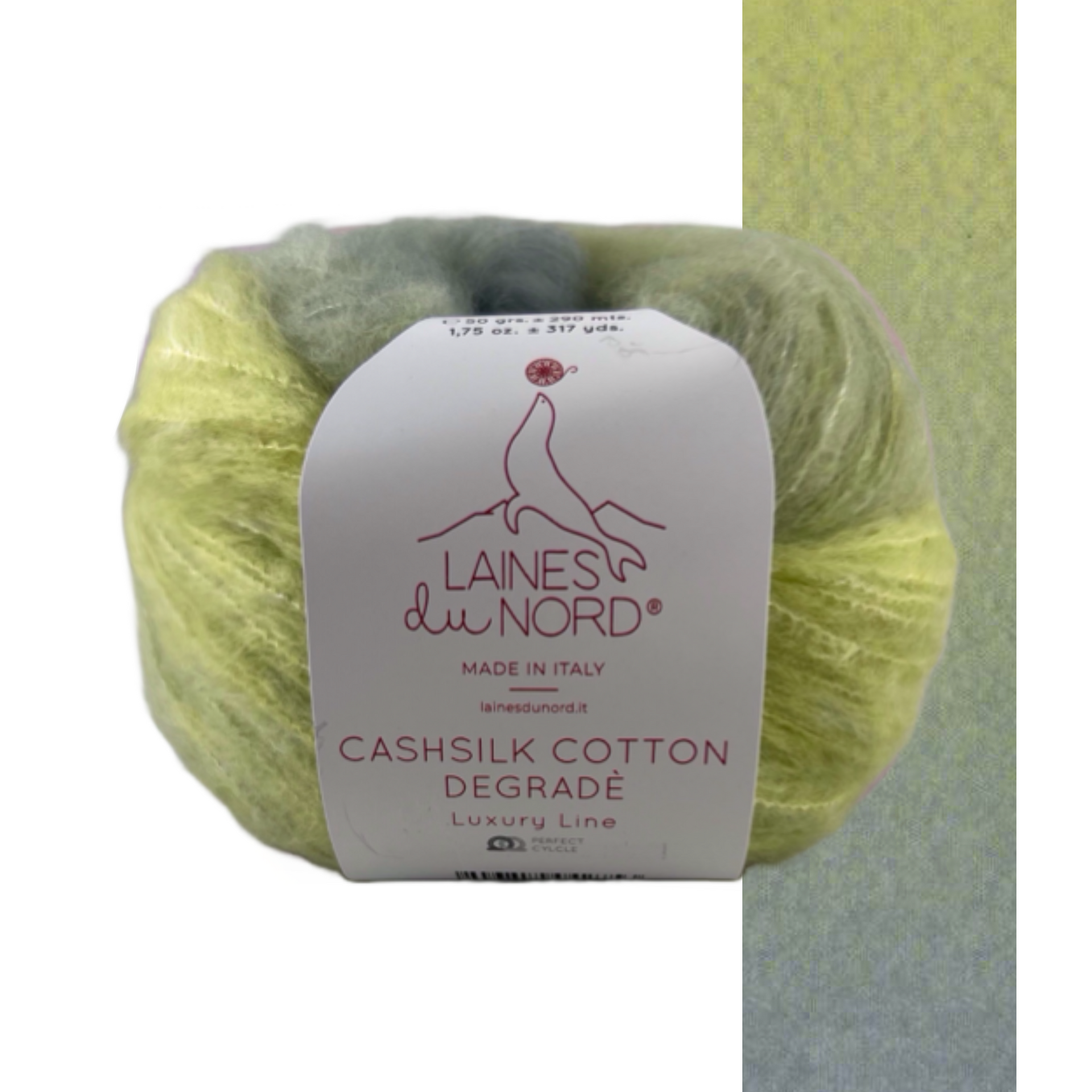55% Merino Wool, 22% silk 13% cotton 10% cashmere Gauge 27-32 sts. = 10cm 4" / Fingering weight