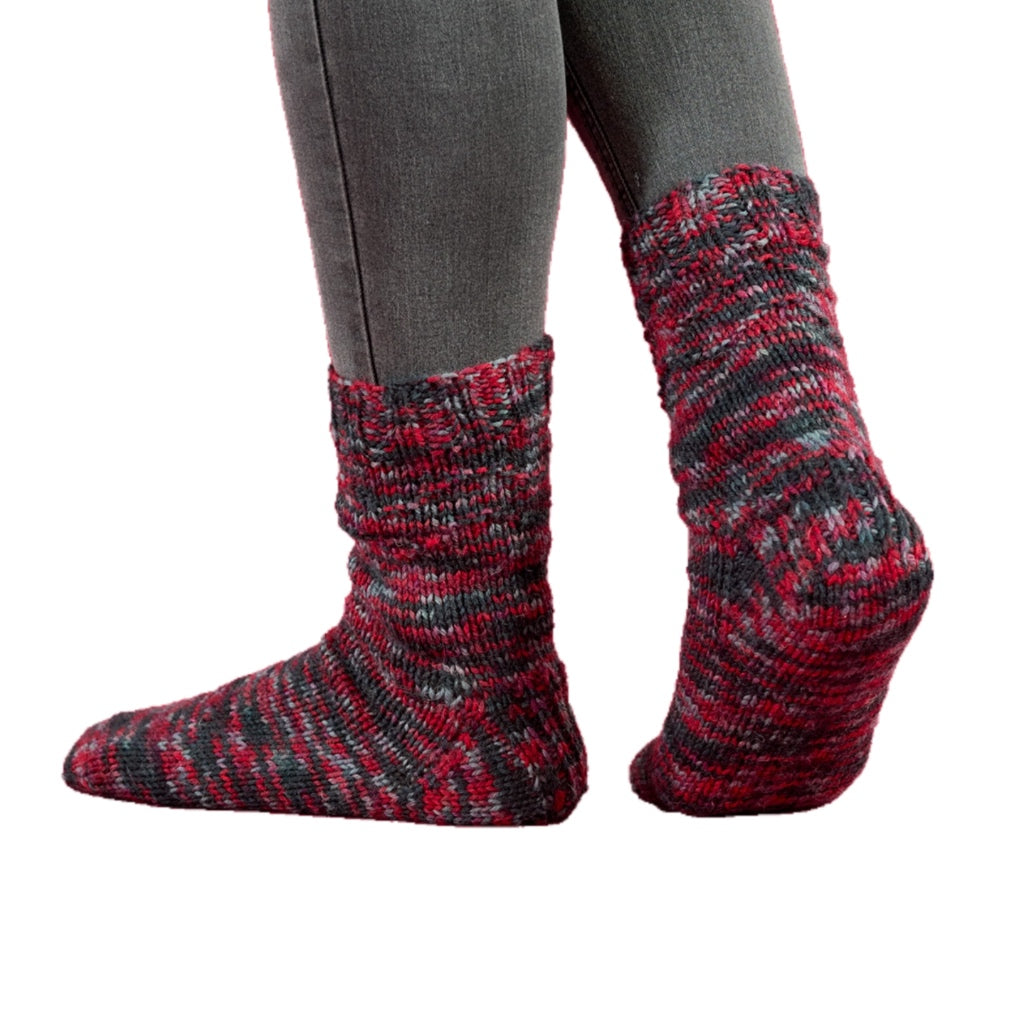 Yarn creates a colorful sock.   6ply Sock weight