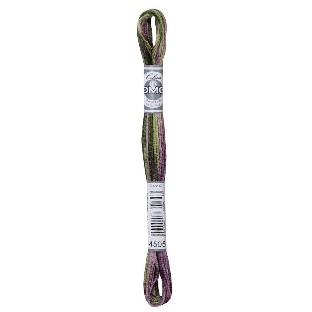 DMC Mouline Coloris embroidery floss is a multi - colored thread with four shades all in one. A great addition to add to your main DMC embroidery floss. It is comprised of six (size 25) easily separated strands, and 100% cotton. Available in 24 colors in 8m (8.7 yds) in a pull skein pull-up Made in France.