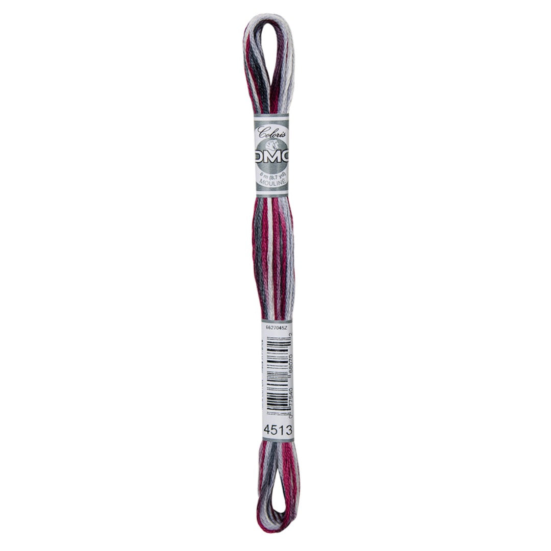 DMC Mouline Coloris embroidery floss is a multi - colored thread with four shades all in one. It is comprised of six (size 25) easily separated strands, and 100% cotton.