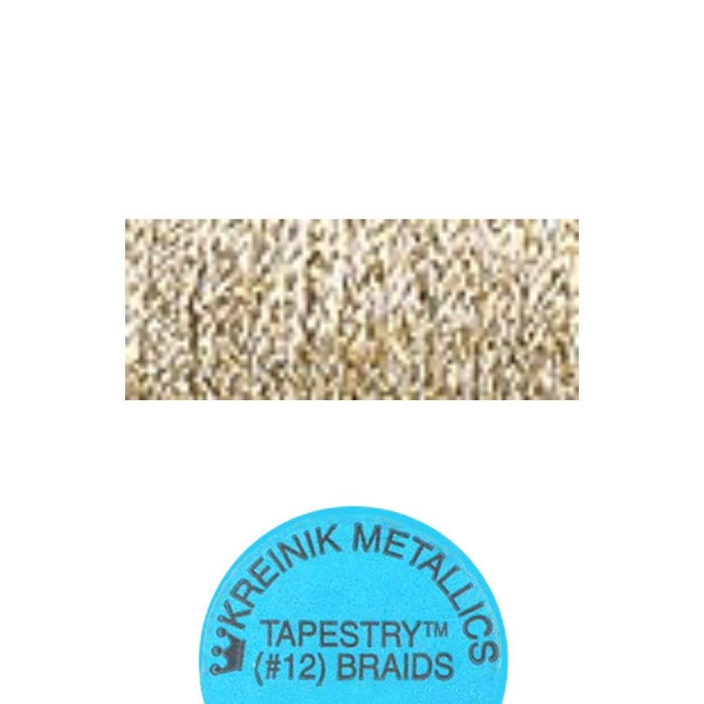 Kreinik Metallic Tapestry #12 Braid.  a high quality metal thread that is meant to be used as is and not separated.  A fibre that adds shimmer of a real metal thread,
