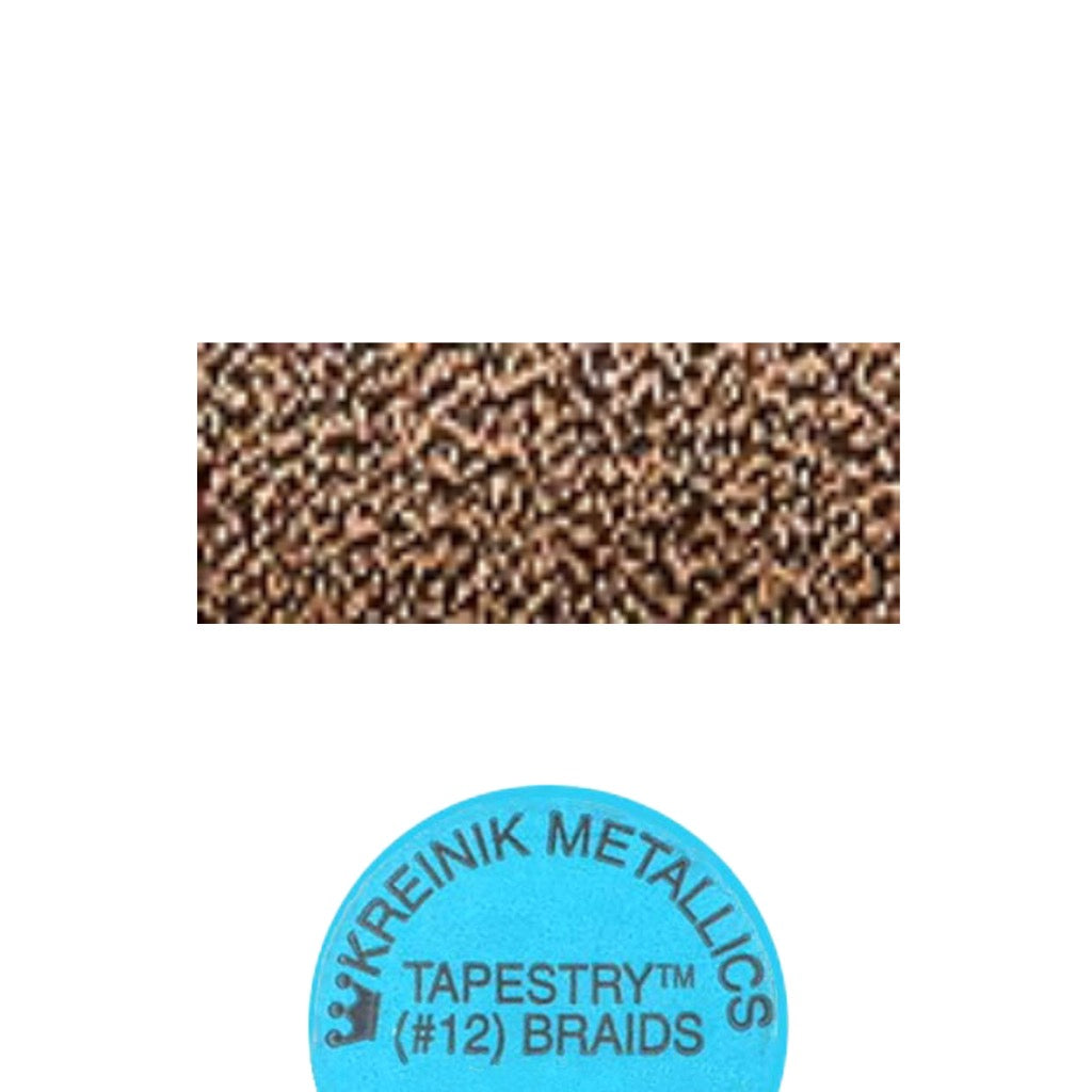 Kreinik Metallic Tapestry #12 Corded Braid slightly thicker than #12 Braid. . A high quality metal thread that is meant to be used as is and not separated. A fibre that adds shimmer of a real metal thread,