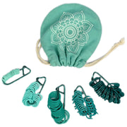 The markers are packed in sheer fabric pouches, and a teal colored fabric bag conveniently holds all the pouches.