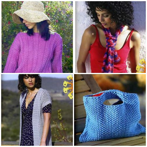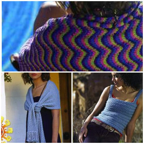 Satchel bags in moss stitch, sun tops, zigzag afghan