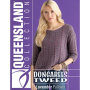 Queensland Collection 112-03 Dungarees Tweed Lavender Pullover by Cheryl Murray Round neckline featuring lace patterning. Drop sleeves