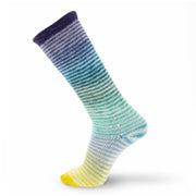 This sock yarn from the Premium Socks & More line allows you to knit two identical striped socks. Start working with the yarn from the inside of the ball for perfect symmetry and dress your feet in a perfect rainbow of colors