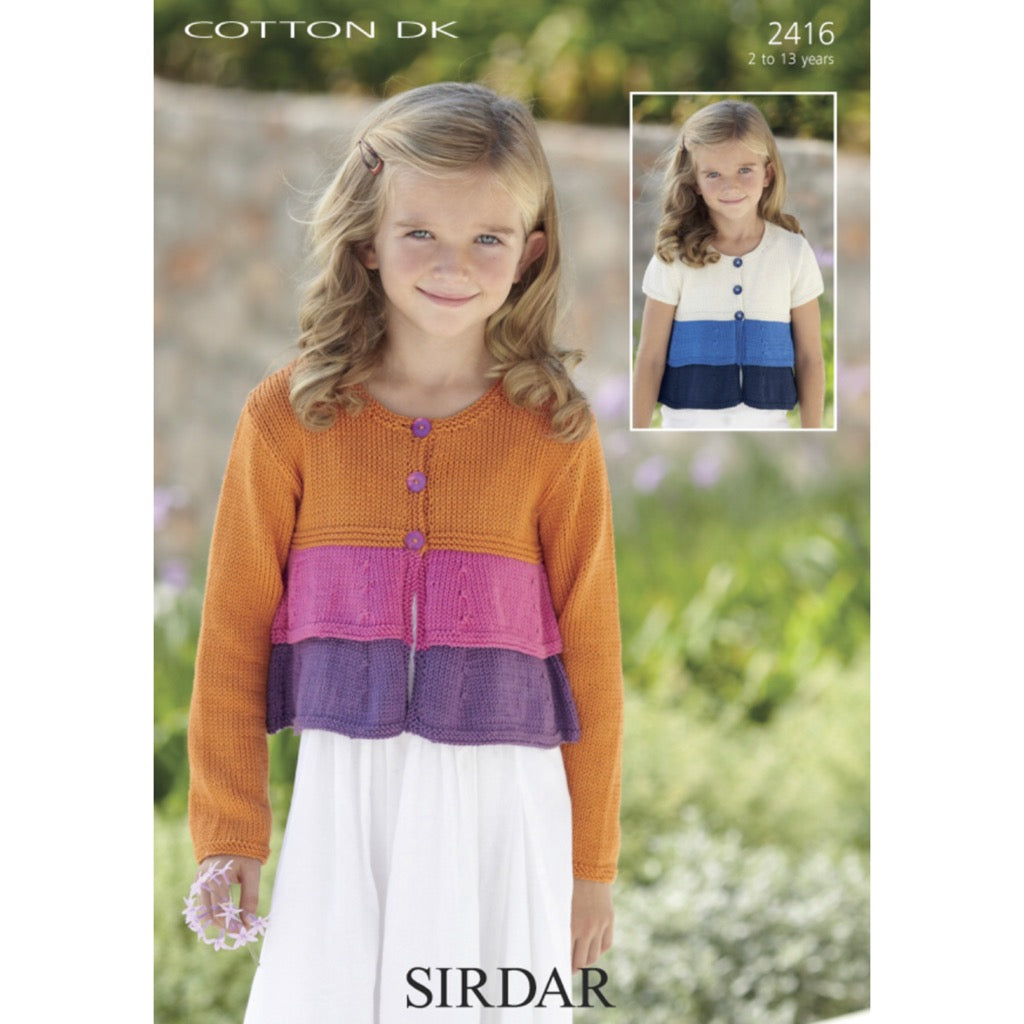 Cotton DK Cardigan with 3 colors with tiered panels and 3 button closure. Worked in optional long sleeve or short sleeve