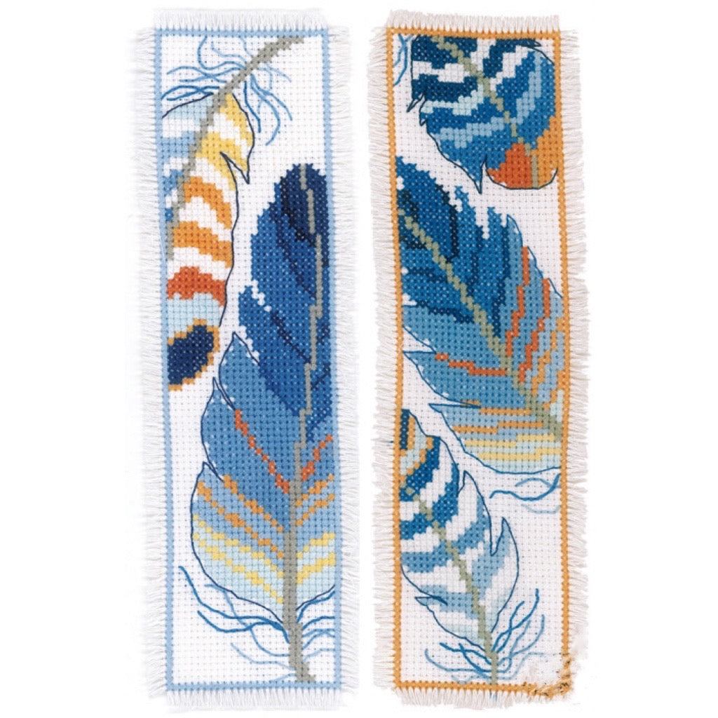 Vervaco Blue Feathered bookmarks Worked on 14ct white aida with stranded cotton, instructions included and needle.